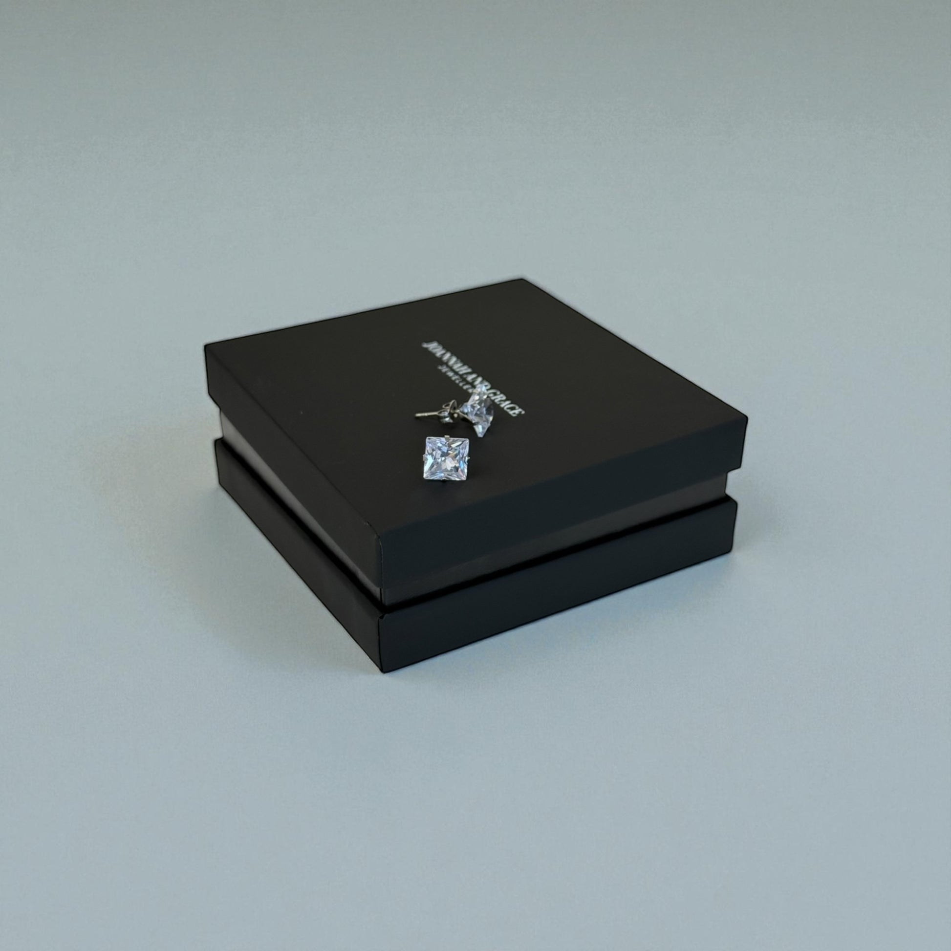 Set above each pearl is a precision cut square crystal stud, chosen for its crisp geometry and brilliant clarity. The contrast between the structured crystal and the fluid, molten form of the pearl creates a look that is both modern and timeless.